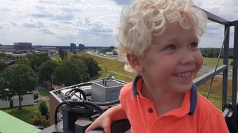 Daar kreeg Aeron een uitleg van de besturingscabine en alle knopjes. Erg indrukwekkend, al helemaal toen hij er ook een paar mocht bedienen.